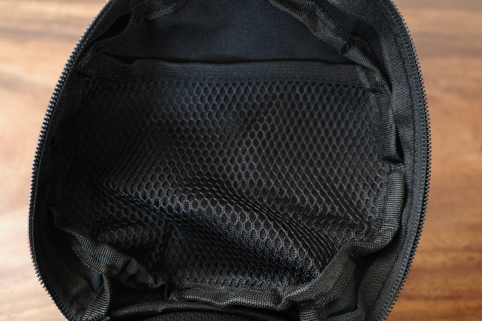 ケース内側にはこのようなメッシュポケットもあるので、耳栓とかアイマスクとかピロー同様に機内で使いたいアイテムを収納してくといいかもしれません。
