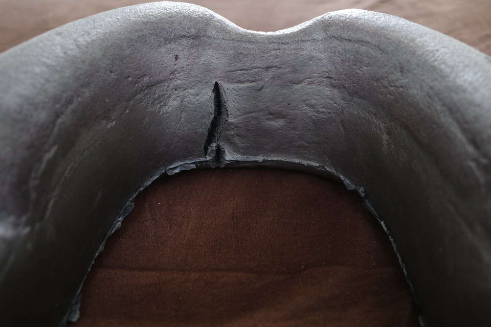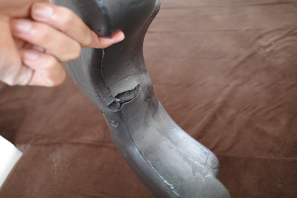 亀裂が入って裂けかけていました。