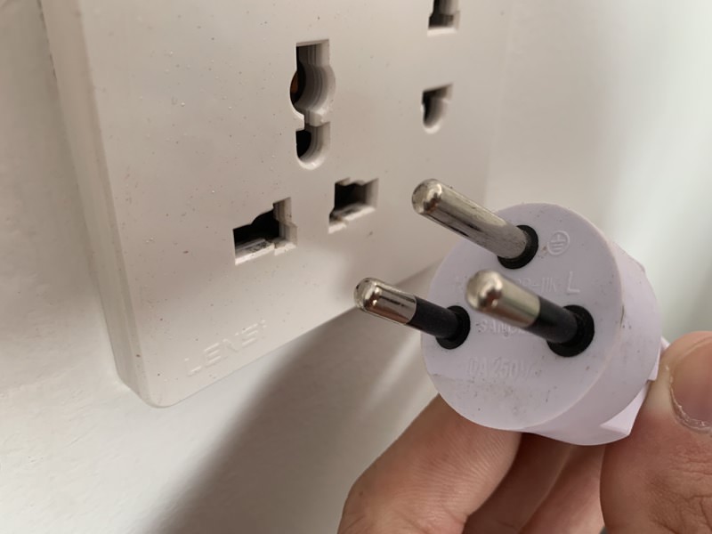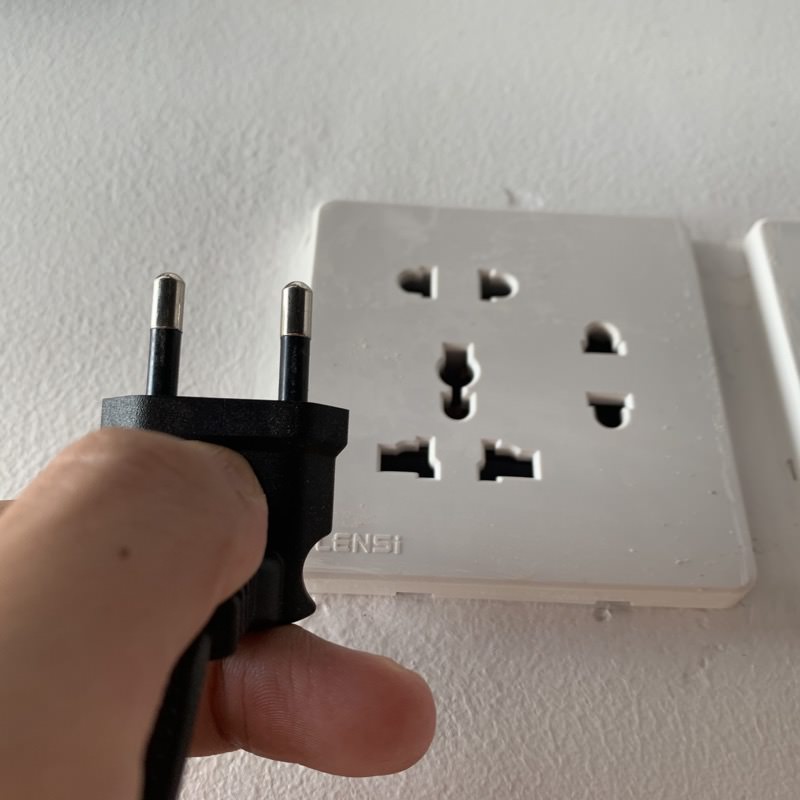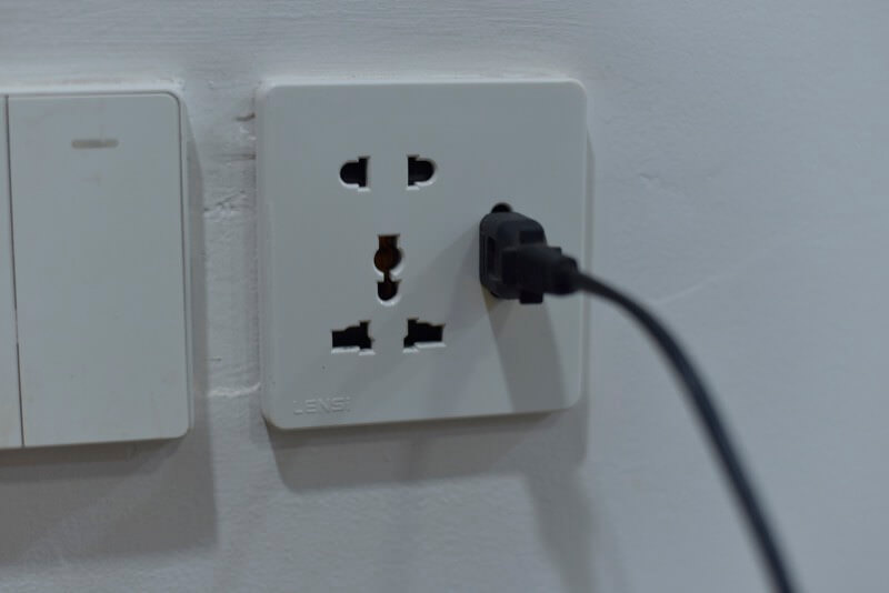 カンボジアではいわゆるCタイプという形状が一般的ですが、カンボジアのコンセント差込口には日本と同じ形のAタイプもカンボジアのCタイプも差し込めるような設計になっています。