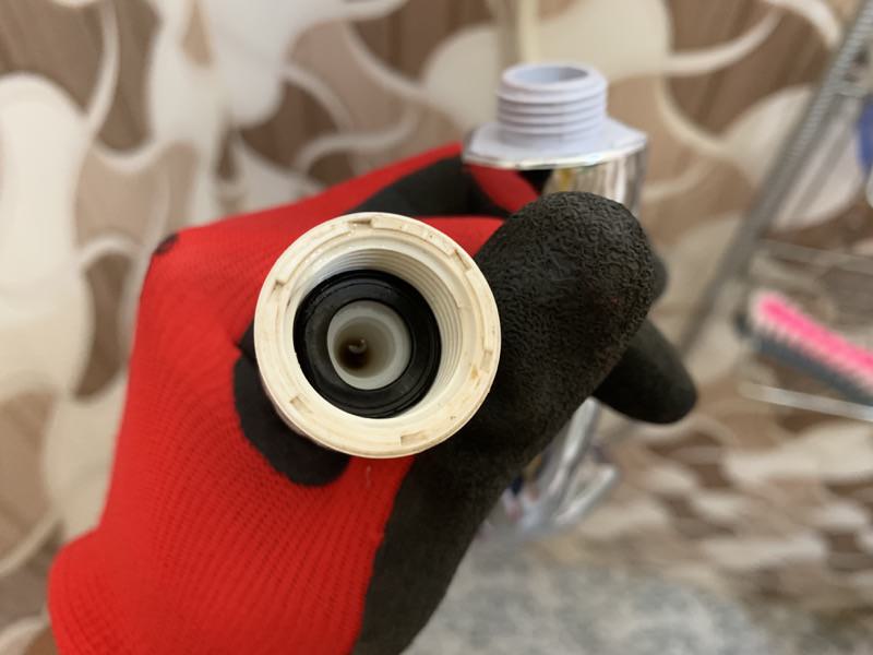 内部パッキンが健全であることを確認して新しいシャワーヘッドを取り付けます。