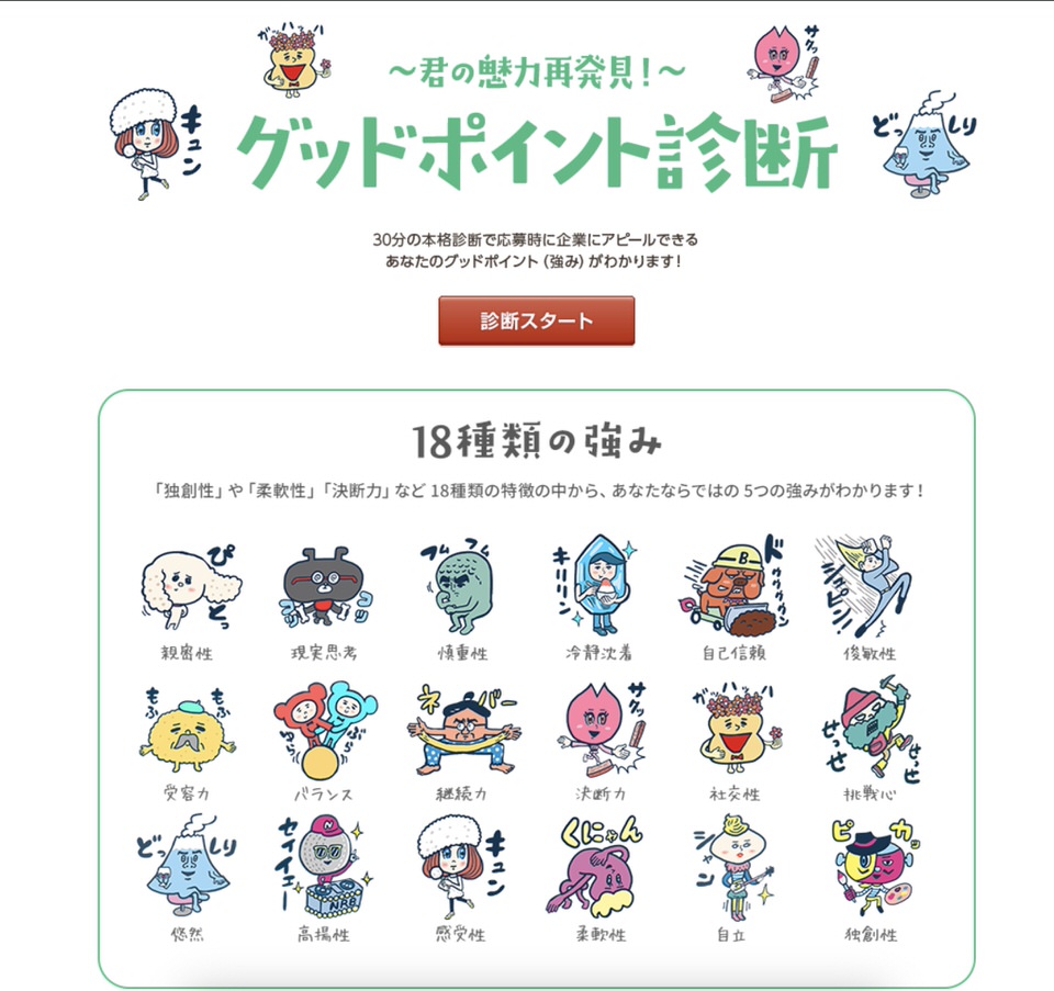 リクナビNEXTに無料登録をすると、グッドポイント診断で自分の長所を言語化してもらえるのでやってみました。