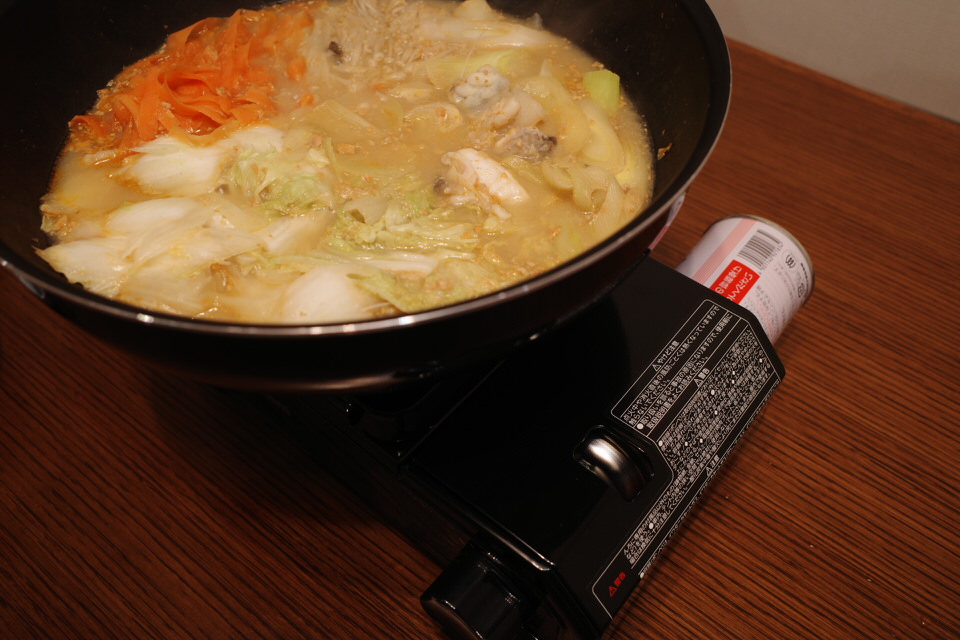 ということでカセットコンロが届いたおかげで、キッチンで鍋をしなくてもちゃんとお気に入りのダイニングテーブルでおいしくいただけます。
