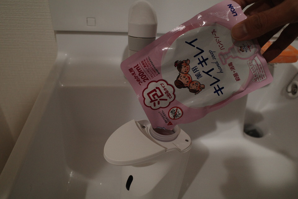 手をかざすだけで自動で泡が出てくる「キレイキレイ薬用泡ハンドソープ専用オートディスペンサー」が便利すぎ