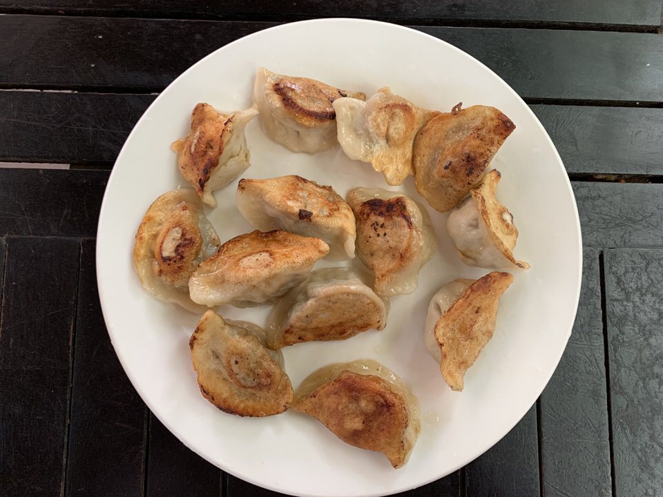 いわゆる日本のラーメン屋に行って、ラーメンに餃子もつけとくかってノリで1人1皿頼むと腹が破裂しそうになります。とりあえず頼んで足りなそうなら追加注文していく方がいいです。