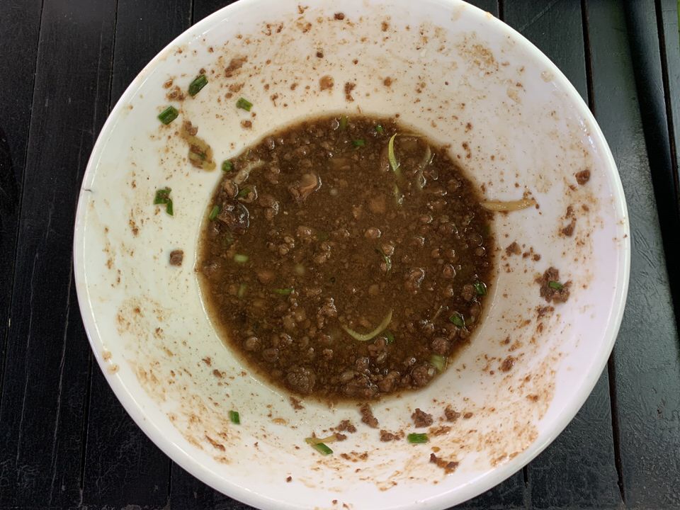 炸醤麺は残った汁に追い飯してもおいしそう。てか絶対美味しい!お腹に余裕がある人は試してみてください。