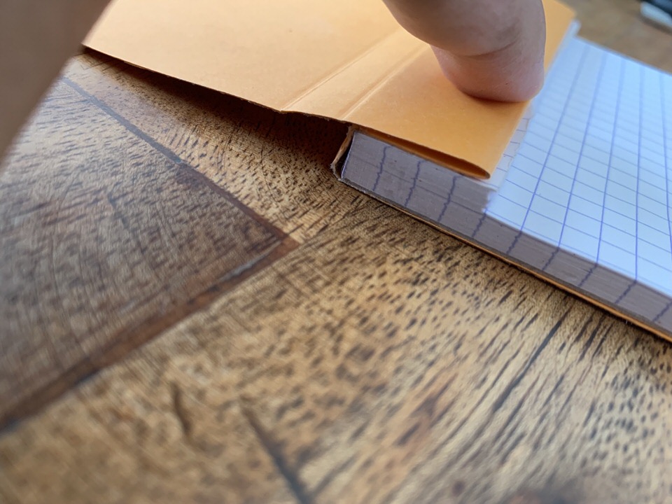 さらに背表紙に向けて折り返すと、メモパッドの暑さにピッタリ。