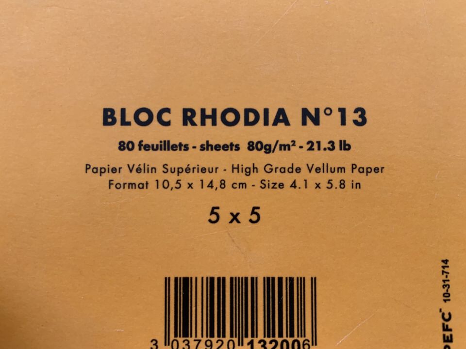 ロディアのメモ帳の背面に書いてある数字(ぼくのはN13)が大きさを表していて、数字が大きいほどメモ帳のサイズも大きくなります。