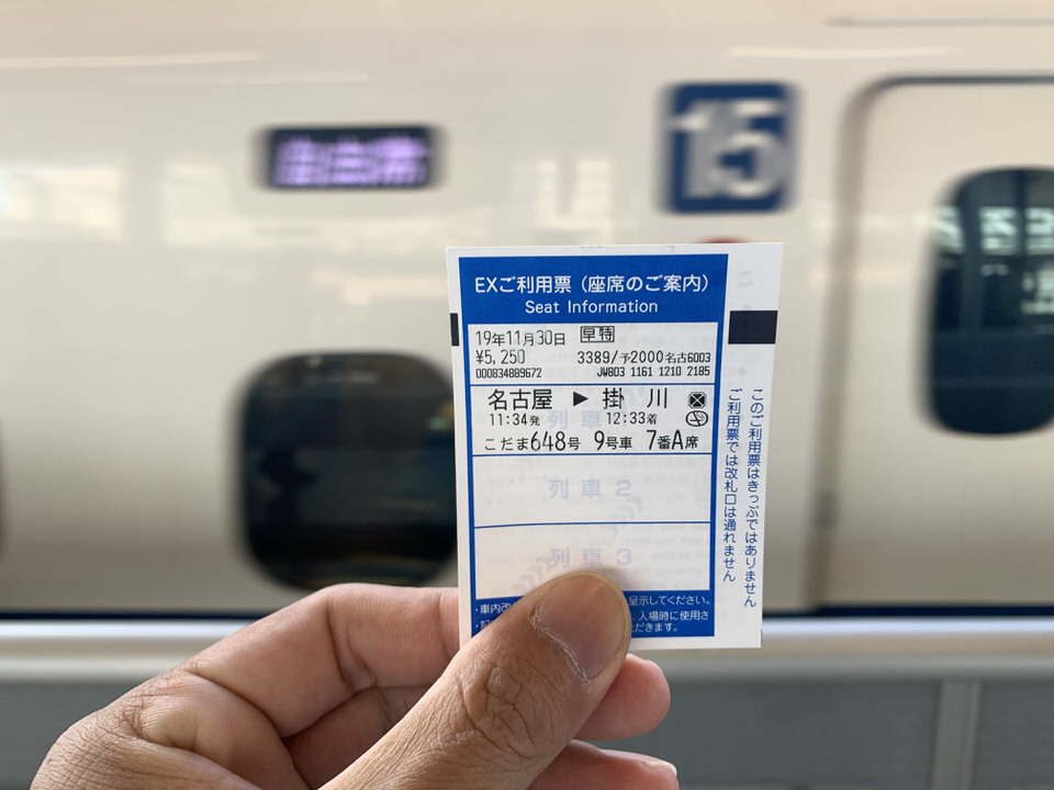 ぼくがよく乗る名古屋-掛川間の料金(2019年12月現在)です。