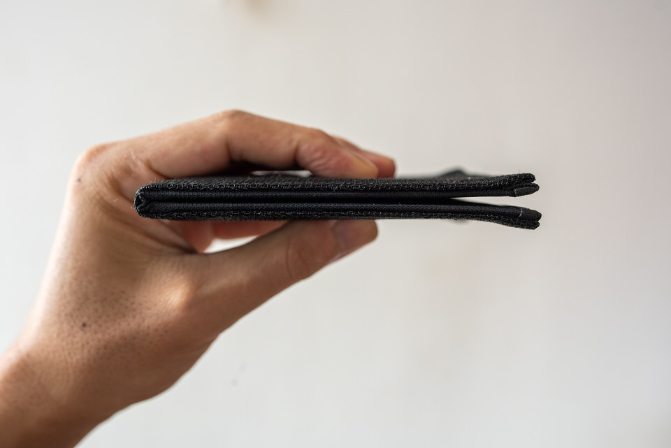 コインケースがないので尻ポッケに入れて座っていても変な盛り上がりがなかったり、コインなどの跡がついたり、変形したりシワになることもありません。シュッとした見た目がとてもいい。大変気に入りました。