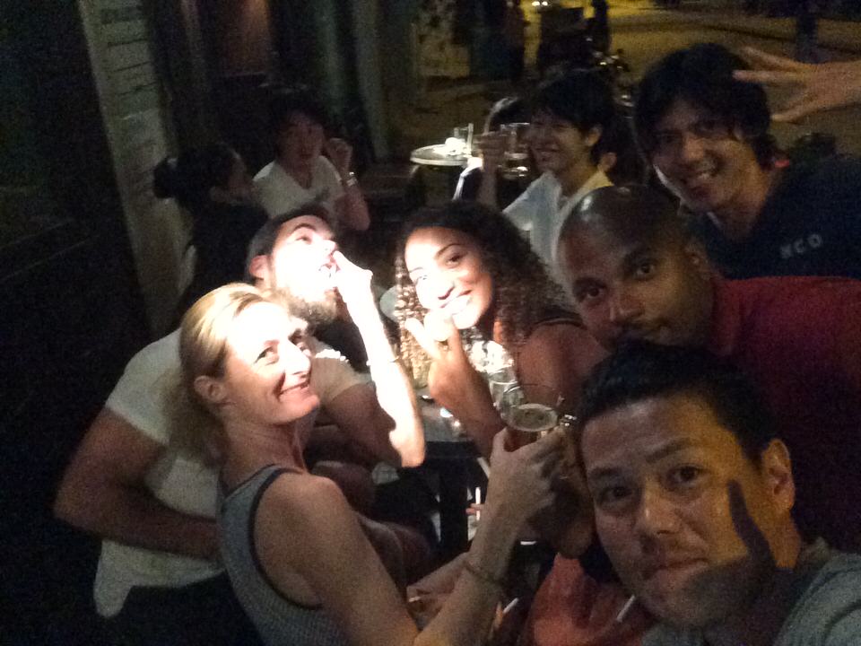 この写真は先生でもあるケンタ・コダマが「今日はゆーすけのトレーニングのために一緒にバーに行って知らない人たちと飲もう」って言い出した後の一コマ。